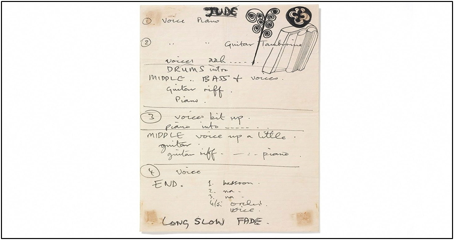 - Handwritten notes from ‘Hey Jude,’ one of The Beatles hit songs,